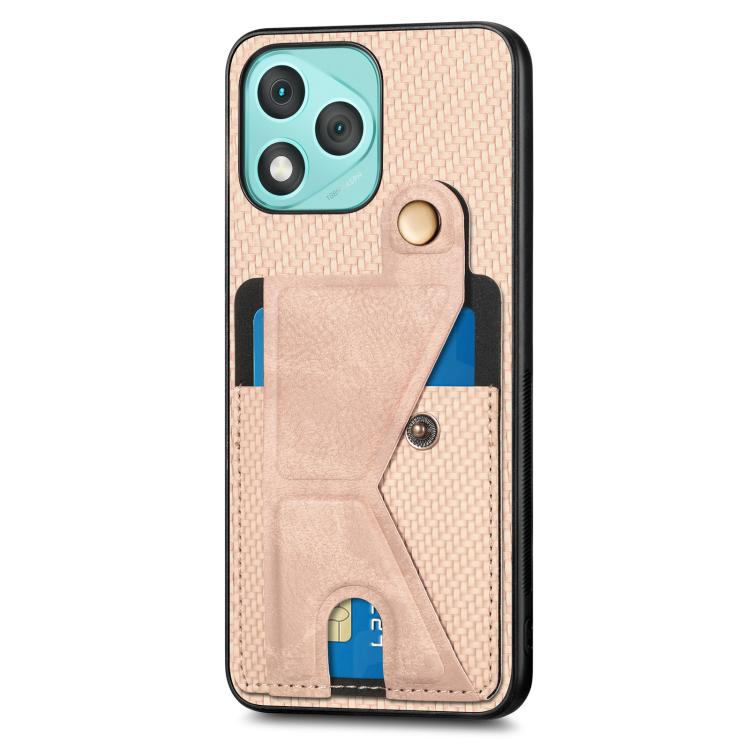 Funda para teléfono con tarjetero en forma de K de fibra de carbono para Honor 400 Lite (caqui)