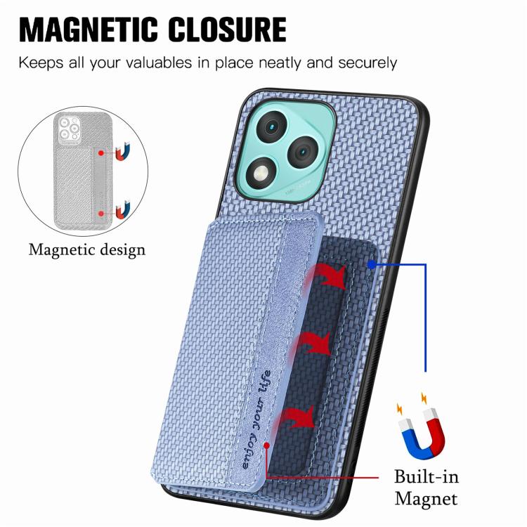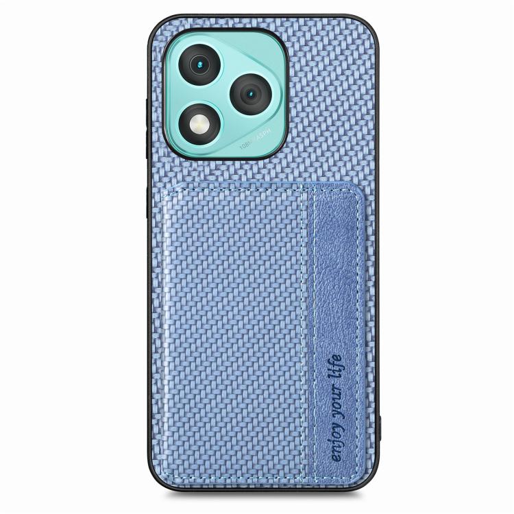 Funda para teléfono con tarjetero magnético de fibra de carbono para Honor 400 Lite (azul)