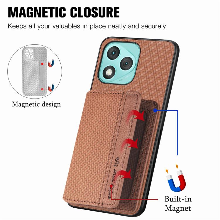Funda para teléfono con tarjetero magnético de fibra de carbono para Honor 400 Lite (marrón)