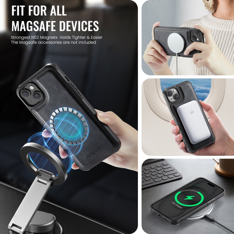 Funda para Teléfono Autspace A12 Magsafe con Tarjetero Magnético Rfid para iPhone 15 (Negra)