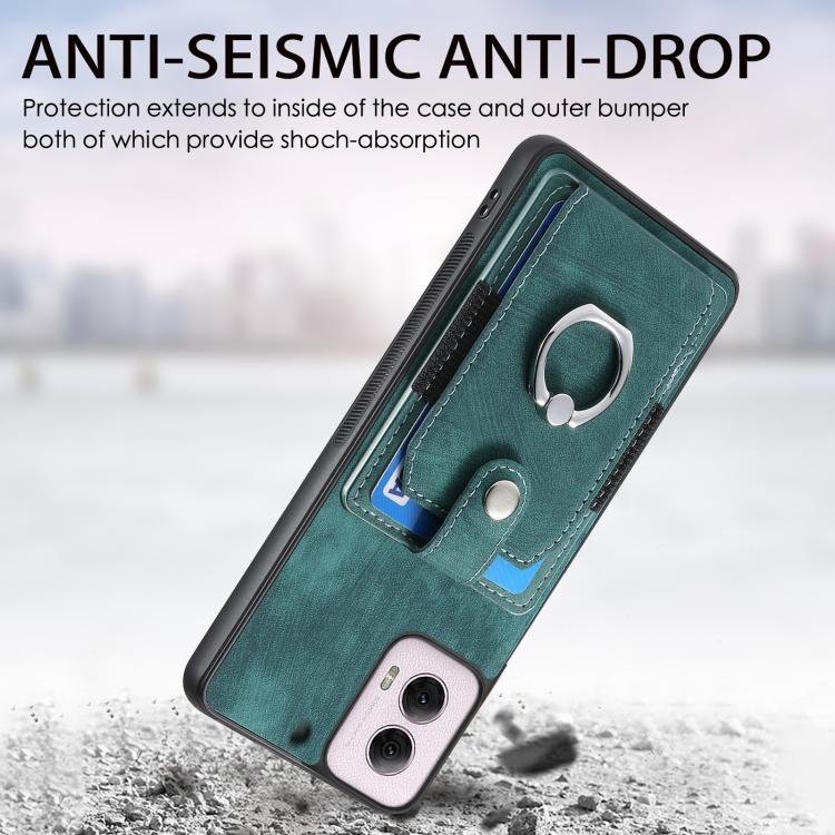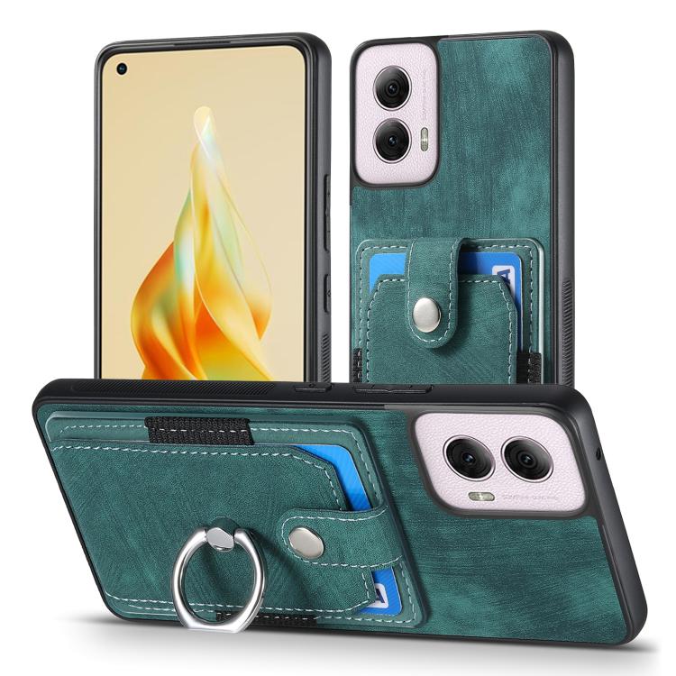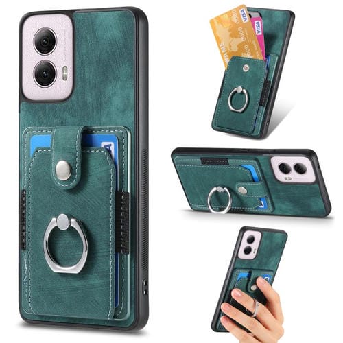Funda para Teléfono Motorola Moto G Power 2024 5G con Tarjetero y Anillo Tacto de Piel (Verde)