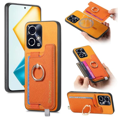 Funda para Teléfono Honor 90 GT 5G con Tarjetero y Anillo de Cuero Retro Magsafe (Amarillo)
