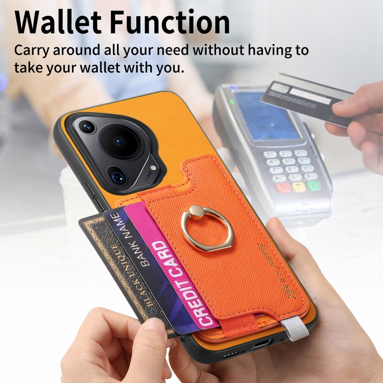 Funda para Teléfono Huawei Pura 70 con Tarjetero y Anillo de Cuero Retro Magsafe (Amarillo)