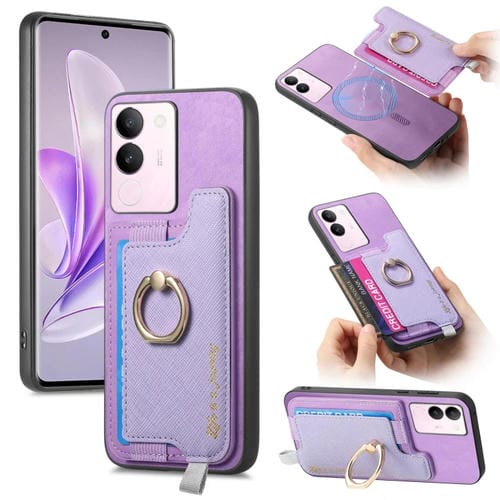 Funda para Teléfono con TaRJetero y Anillo de Cuero con Diseño Retro Magsafe para Vivo S17/S17 Pro/V29 Pro 5G (Morado)