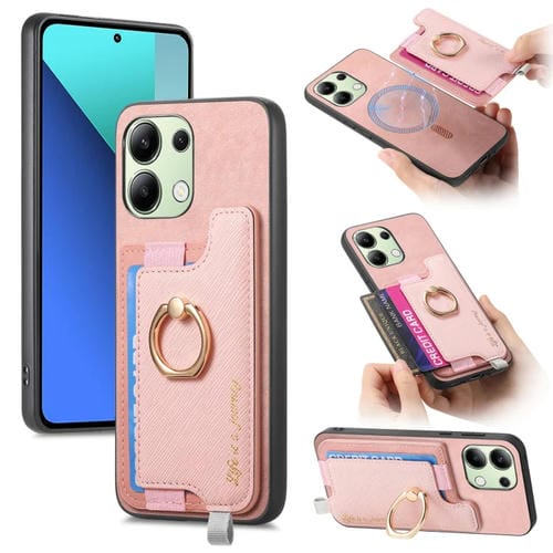 Funda para Teléfono con TaRJetero y Anillo de Cuero con Diseño Retro Magsafe para Xiaomi Redmi Note 13 4G (Rosa)
