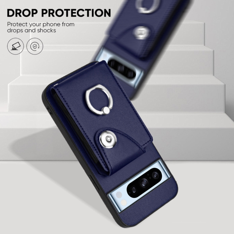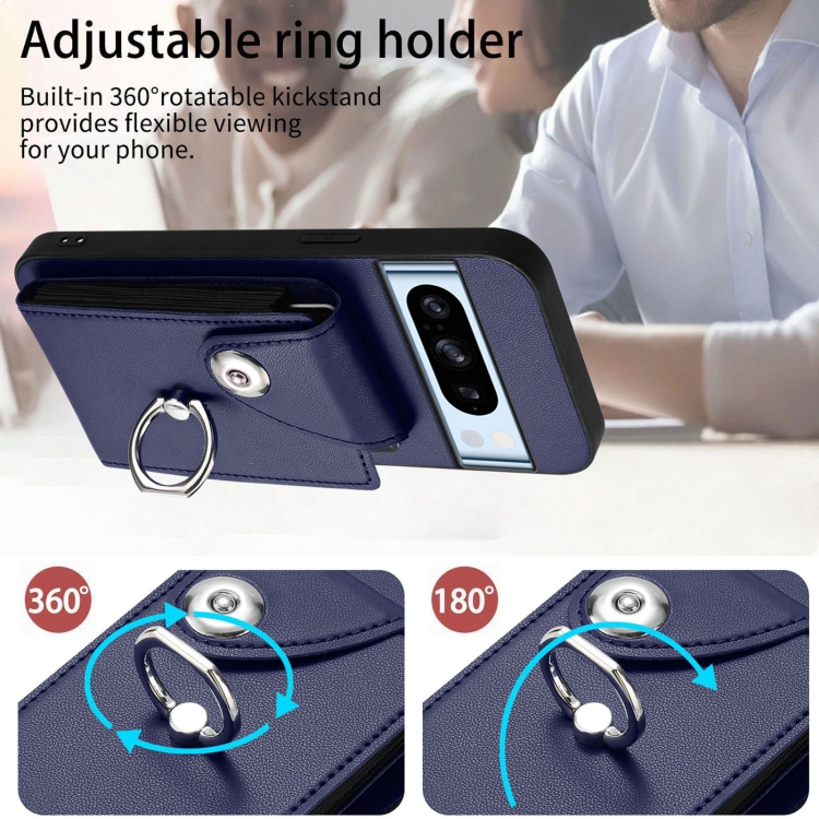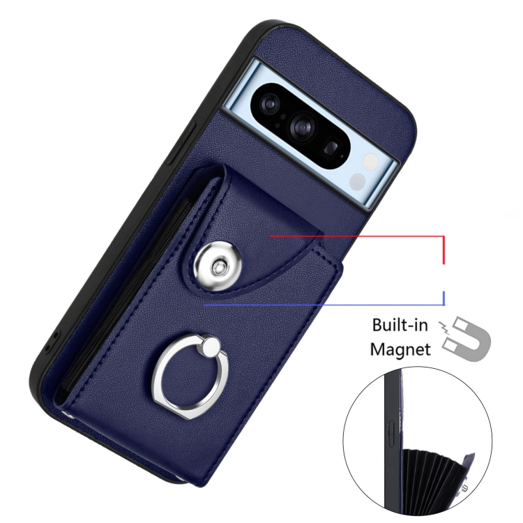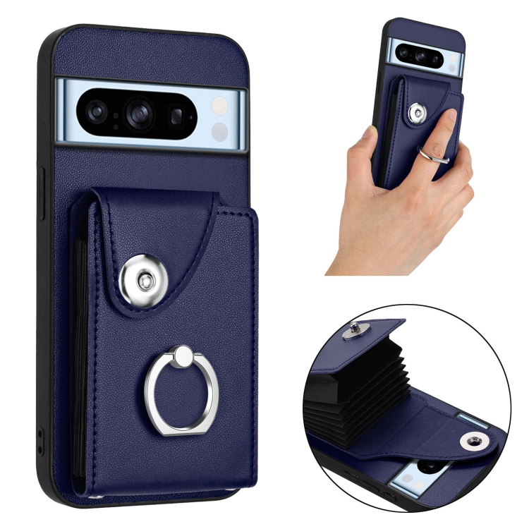 Funda para Teléfono con Tarjetero y Anillo para Google Pixel 8 Pro (Azul)