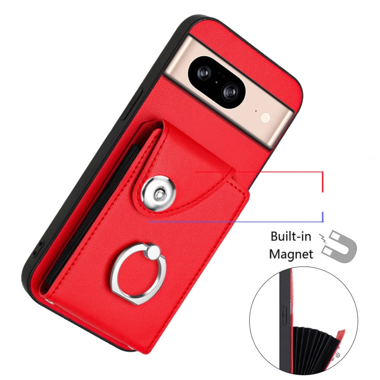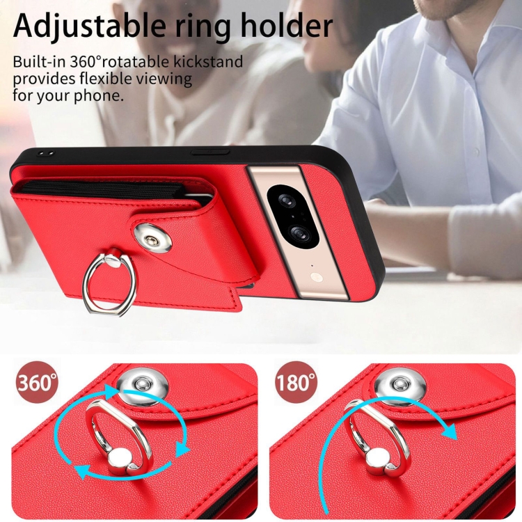 Funda para Teléfono Google Pixel 8 con Tarjetero y Anillo (Rojo)