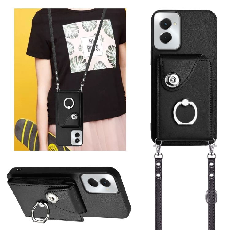 Funda para Teléfono Motorola Moto G Power 2024 5G con Tarjetero, Anillo y Cordón Largo (Negro)