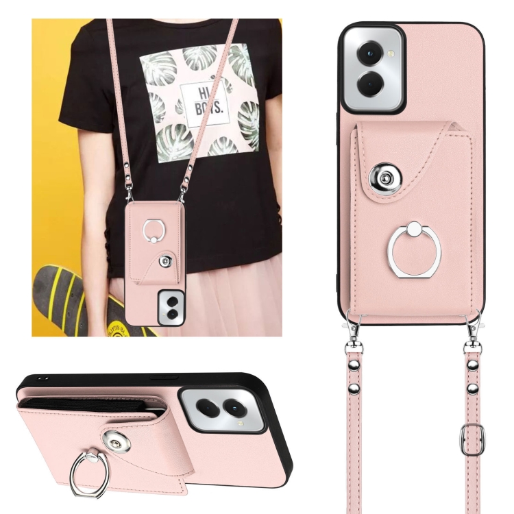 Funda para teléfono Motorola Moto G Power 2024 5G con tarjetero, anillo y cordón largo (Rosa)