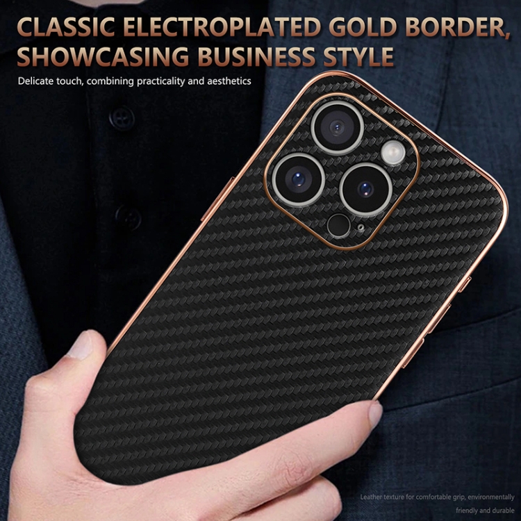 Funda para Teléfono Azns iPhone 16 Pro Max Textura Fibra de Carbono Borde Galvanizado (Azul)