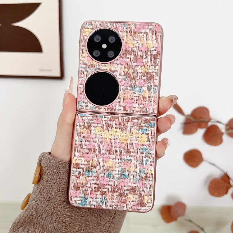 Funda para Teléfono Huawei Pocket 2 con Textura de Tejido y Color Ilusorio (Rosa)