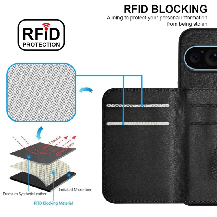 Funda para Teléfono Google Pixel 9/9 Pro Textura Rombal y RFID con Cordón Largo (Negro)