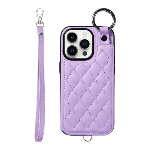 Funda para Teléfono Apple iPhone 14 Pro Textura Rómbica Cordón Corto (Morado)
