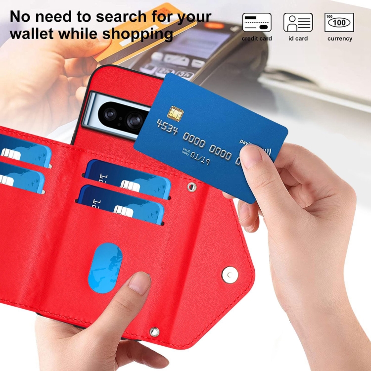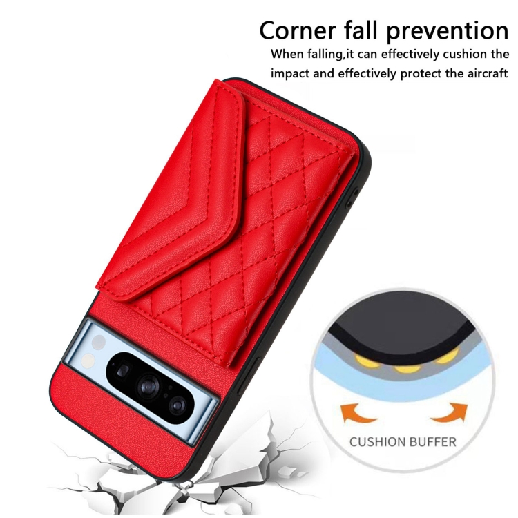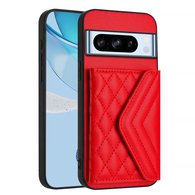 Funda para Teléfono Google Pixel 8 Pro con Textura Rómbica y Tarjetero RFID con Cordón Largo (Rojo)
