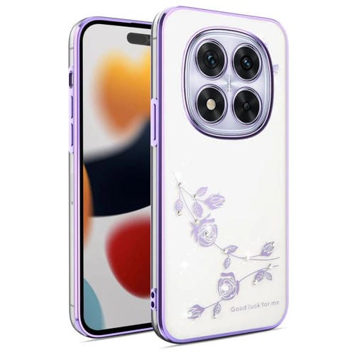 Funda para Teléfono con Todo Incluido y Diseño de Flores y Diamantes Brillantes para Xiaomi Redmi Note 14 Pro 5G (Morado)