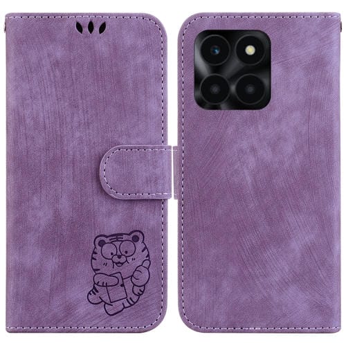 Funda para Teléfono Cuero con Relieve Little Tiger para Honor X6A (Púrpura)