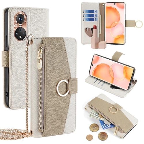 Funda para Teléfono Honor 50 de Cuero con Textura Litchi Cruzada (Blanco)
