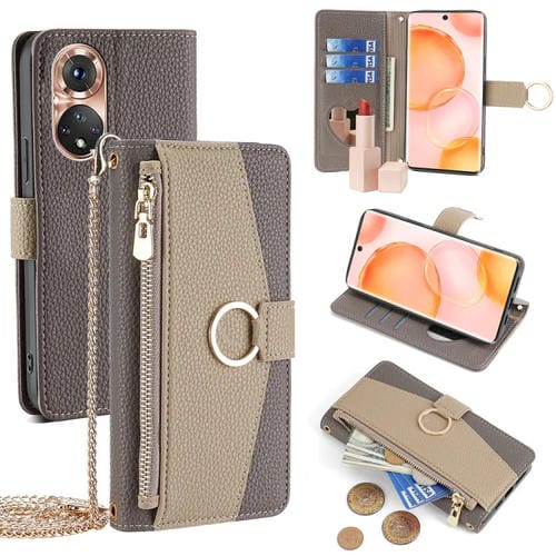 Funda para Teléfono Cuero Textura Litchi Cruzada Honor 50 (Gris)