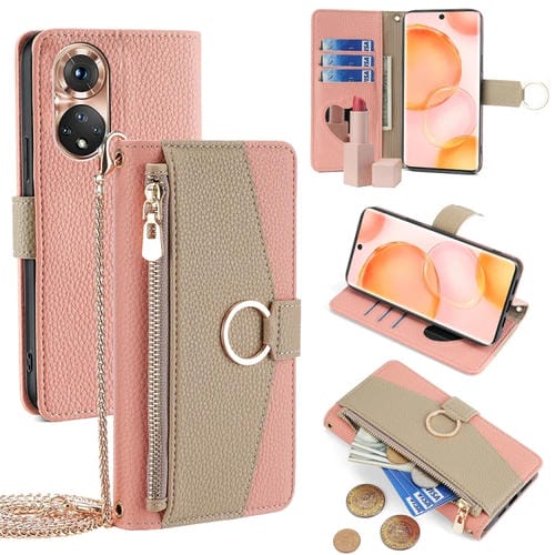 Funda para Teléfono Cuero Textura Litchi Cruzada Honor 50 (Rosa)