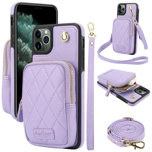 Funda para Teléfono Awquer iPhone 11 Pro Piel de Lichi Cremallera Cartera Cruzada (Morado Claro)