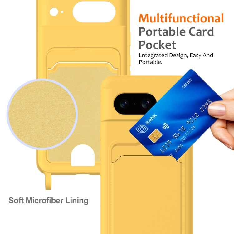 Funda para Teléfono Google Pixel 8 de Silicona Líquida con Cordón y Bolsa para Tarjetas (Amarillo)