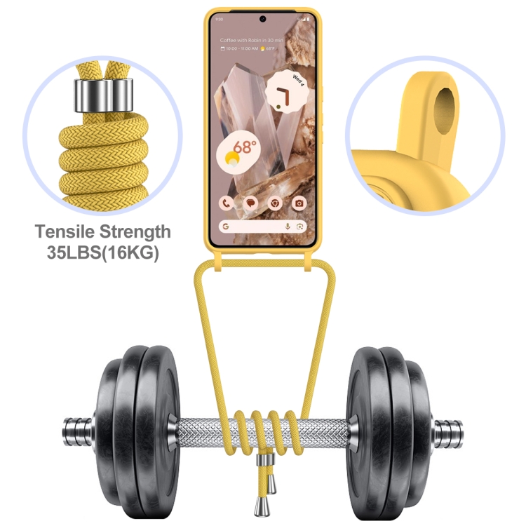 Funda para Teléfono Google Pixel 8 Pro de Silicona Líquida con Cordón y Bolsa para Tarjetas (Amarillo)