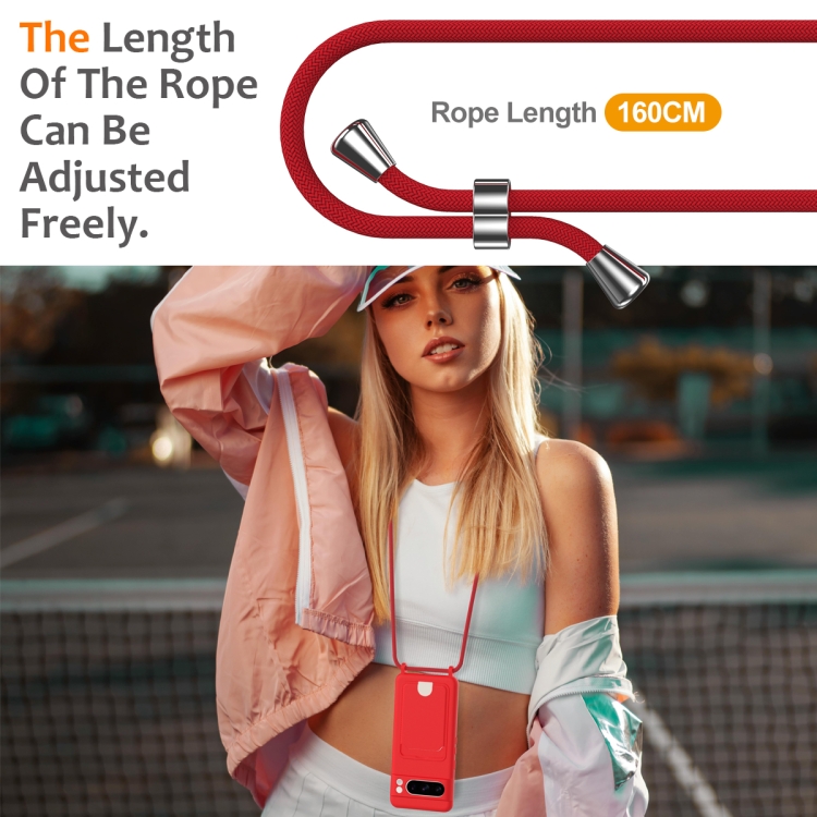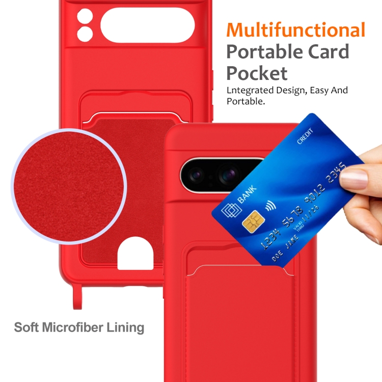 Funda para Google Pixel 8 Pro de Silicona Líquida con Cordón y Bolsa para Tarjetas (Rojo)