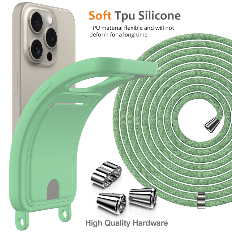 Funda para Teléfono Silicona Líquida iPhone 16 Pro Max Cordón Tarjetero (Verde)