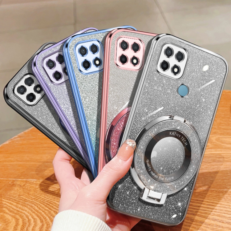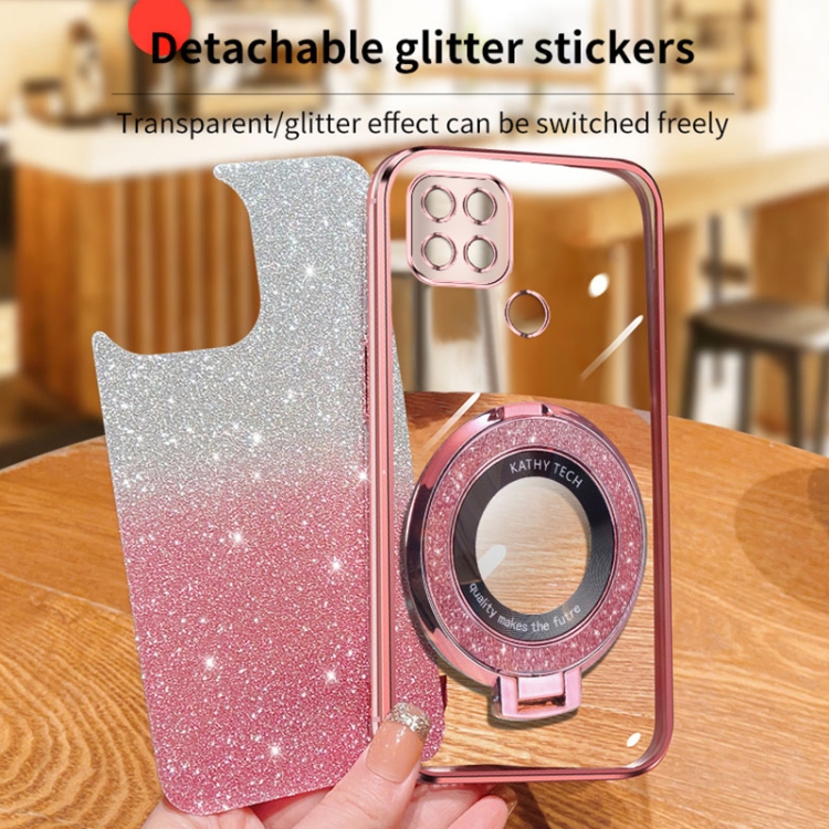 Funda para Teléfono de TPU con Soporte Redondo y Purpurina Degradada Plateada para Oppo A35/A15 (Rosa)