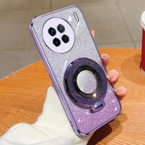 Funda para Teléfono de TPU con Soporte Redondo y Purpurina Degradada Plateada para Vivo X90 (Morado)