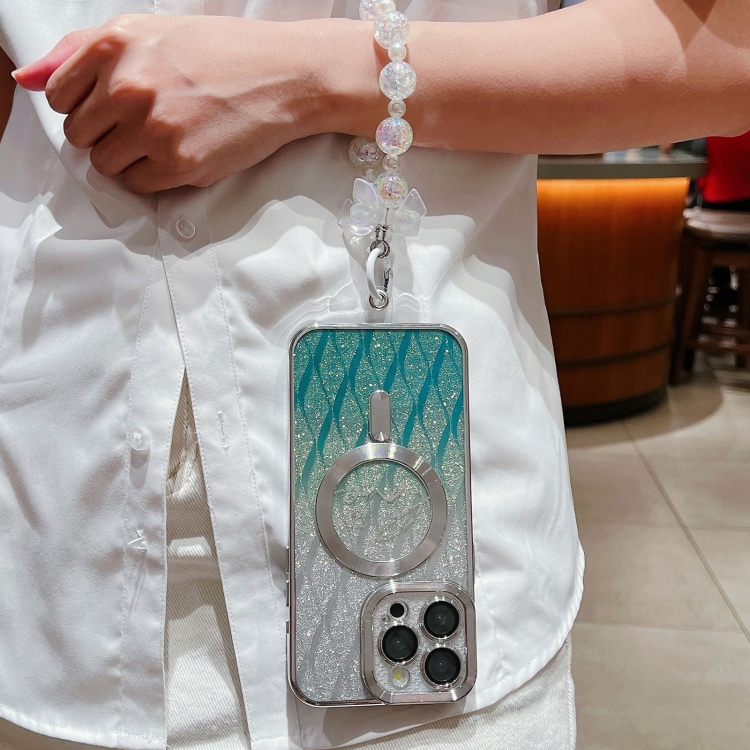 Funda para Teléfono TPU Magsafe iPhone 12 Pro Max Diseño Hojas de Amor Purpurina (Verde)