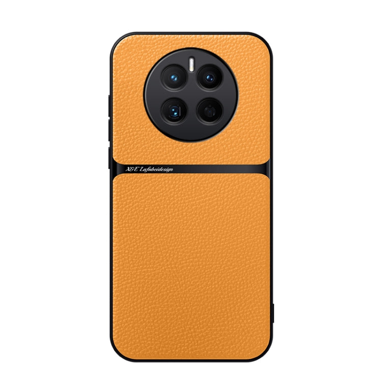 Funda para Teléfono Huawei Mate 50 Piel de Lichi Cobertura Total Magnética a Prueba de Golpes (Amarilla)