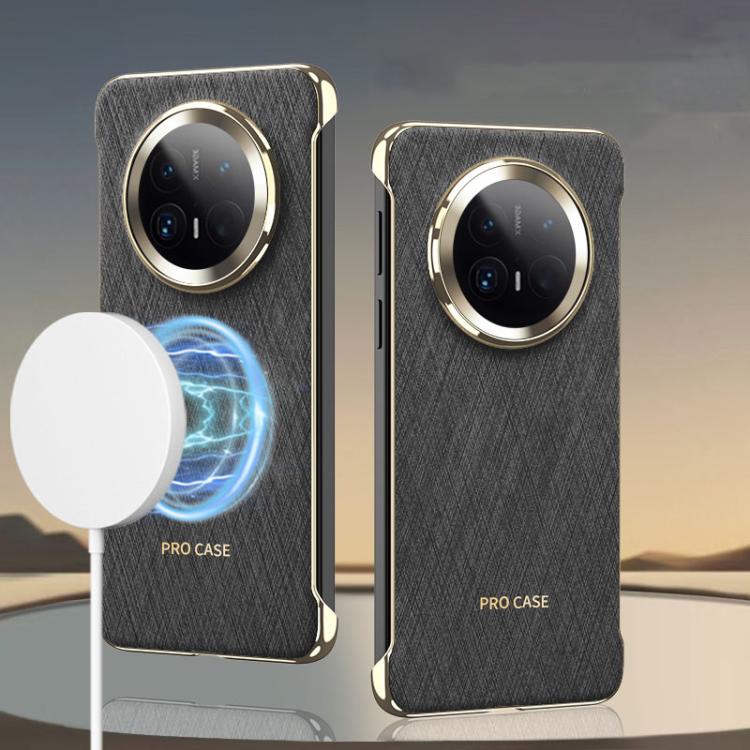 Funda para Teléfono Huawei Mate 70 Gkk Cuero Galvanizado sin Bordes con Magsafe (Brocado Plateado y Negro)