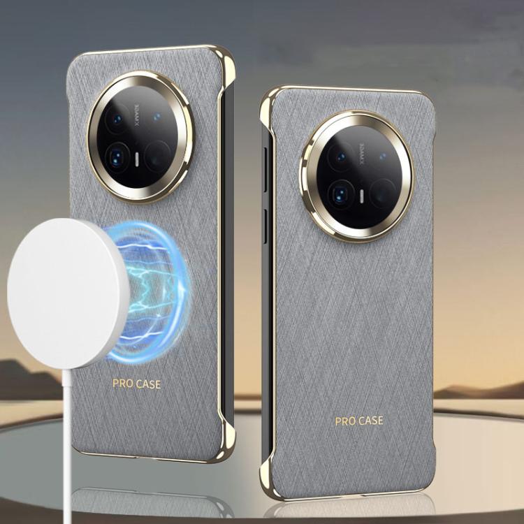 Funda para Teléfono Huawei Mate 70 Gkk Cuero Galvanizado sin Bordes con Magsafe (Gris Brocado Plateado)