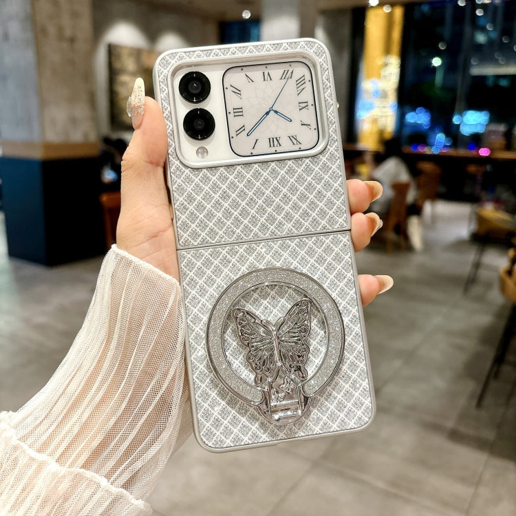 Funda para Teléfono Huawei Nova Flip con Diseño de Rombos y Diamantes Brillantes para PC con Soporte (Plateada)