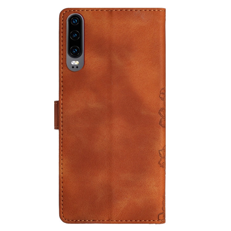 Funda para Teléfono Huawei P30 con Diseño de Mariposa y Flores de Cerezo en Relieve en PU (Marrón)