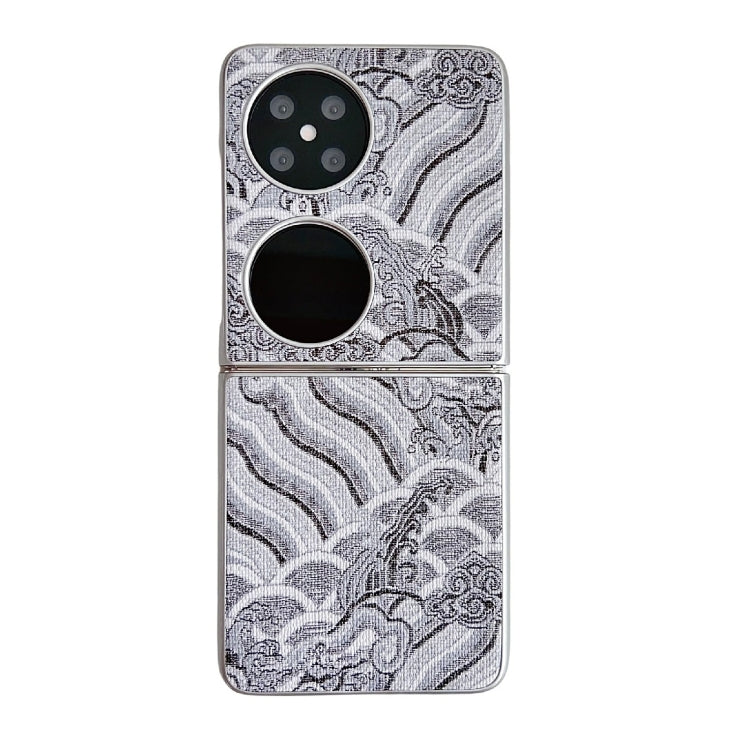 Funda para Teléfono Huawei P50 Pocket con Bordado de Nubes Propicias y Cobertura Total (Gris)