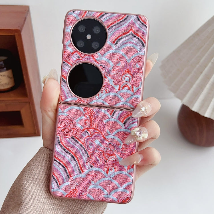 Funda para Teléfono Huawei P50 Pocket con Bordado de Nubes Propicias y Cobertura Total (Roja)