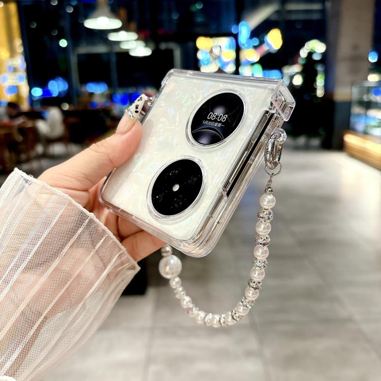 Funda para Teléfono Huawei P50 Pocket con Textura Perlada en Tres Partes y Pulsera (Rosa)