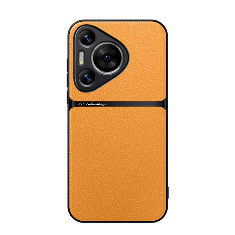 Funda para Teléfono Huawei Pura 70 Pro y Pura 70 Pro+ de Piel de Lichi con Cobertura Total Magnética y Antigolpes (Amarilla)
