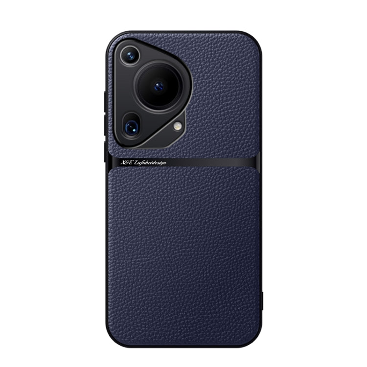 Funda para Teléfono Huawei Pura 70 Ultra Piel de Lichi Cobertura Total Magnética Azul Marino