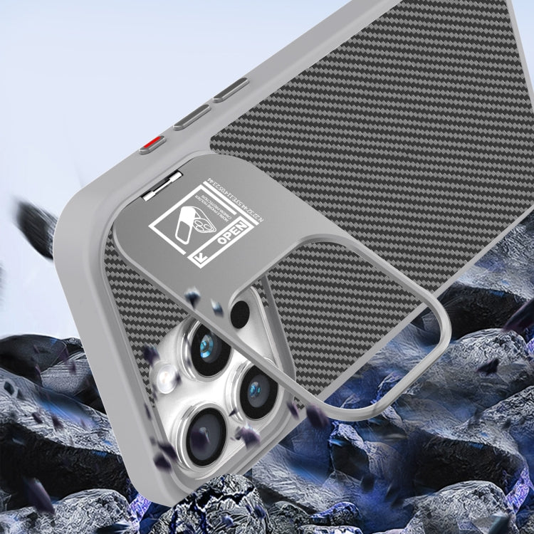 Funda para Teléfono Magsafe Fibra de Carbono Soporte Plegable iPhone 14 Pro (Gris)
