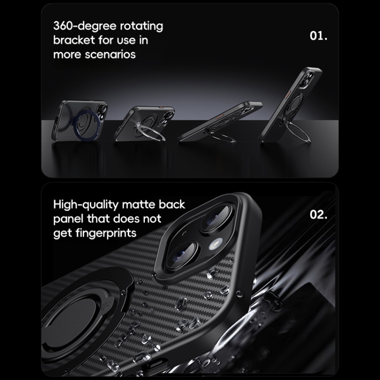 Funda para Teléfono Magsafe Fibra de Carbono iPhone 15 Soporte Giratorio 360 (Negro y Plateado)