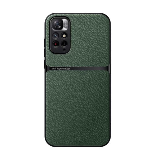 Funda para Teléfono Redmi Note 11 4G de Piel de Lichi con Cobertura Total Magnética y a Prueba de Golpes (Verde)