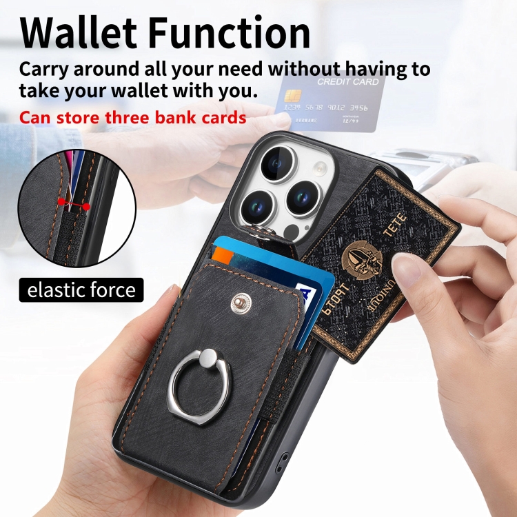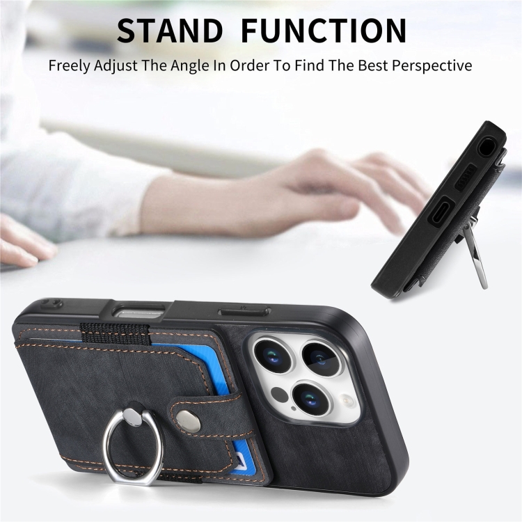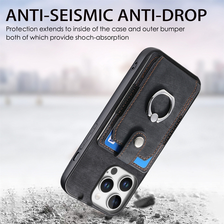 Funda para Teléfono Tipo Billetera con Anillo y Tarjetero para iPhone 16 Pro Max (Negra)