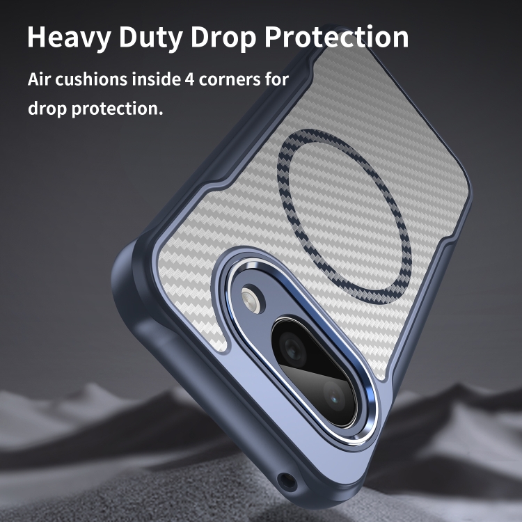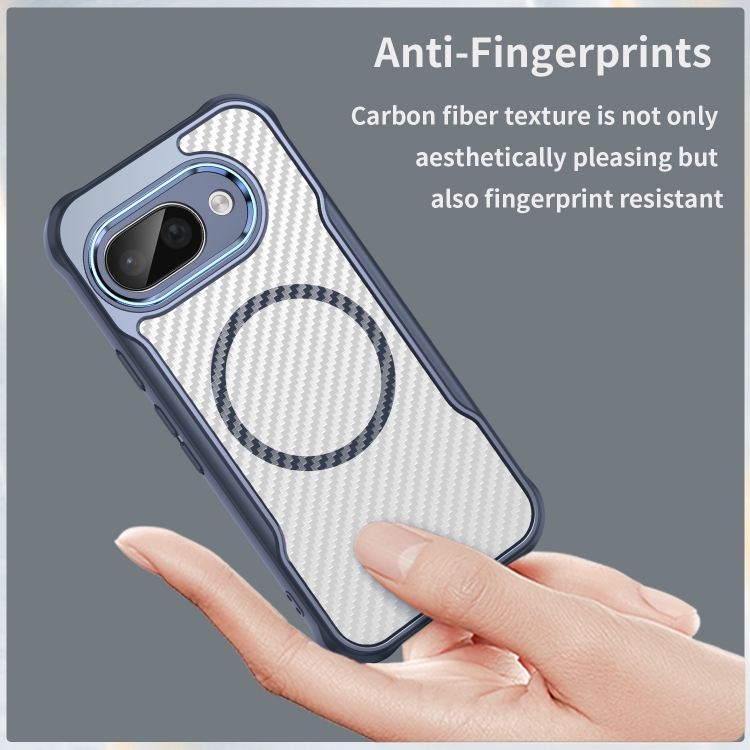 Funda para Teléfono Google Pixel 9A Translúcida Magsafe Textura Fibra de Carbono (Azul)