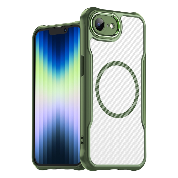 Funda para Teléfono Magsafe iPhone 16E Translúcida Textura Fibra de Carbono (Verde)