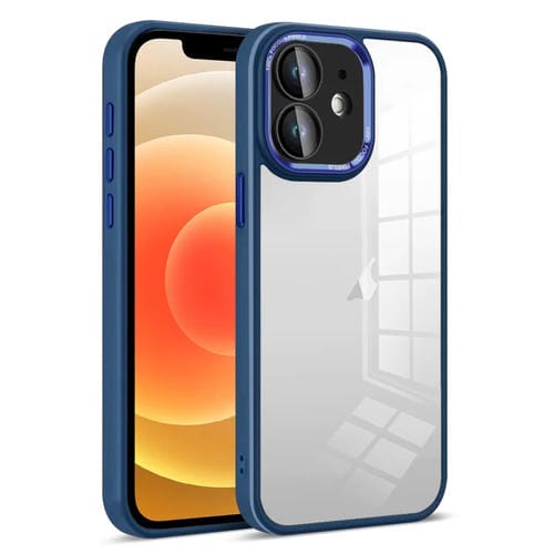 Funda para Teléfono Transparente con Película Protectora de Lente de Armadura Colorida para iPhone 12 (Azul)