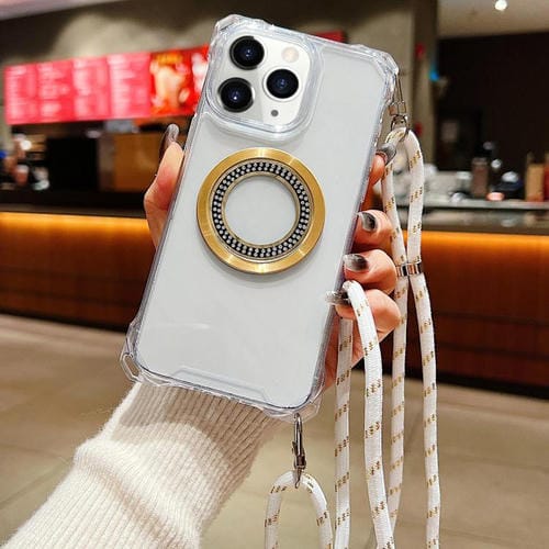 Funda para Teléfono TPU iPhone 11 Pro Traveler Crossbody con Cuatro Esquinas y Cordón (Blanca)