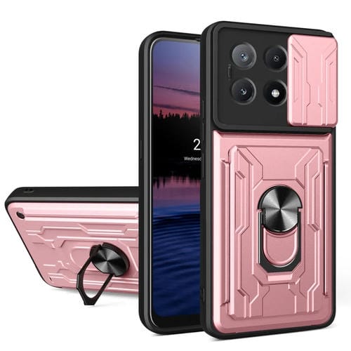 Funda para Teléfono Xiaomi Poco X6 Pro con Carcasa Deslizante de TPU y PC con Ranura para Tarjetas (Oro Rosa)